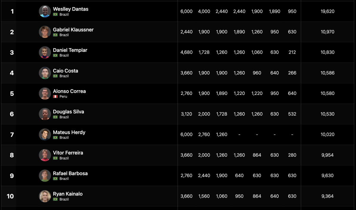 Correa arrancó su corrida en el evento en ronda 3, de 32 surfistas, pasó en segundo, luego en primero en r16 y en cuartos venció a Samuel Joca.