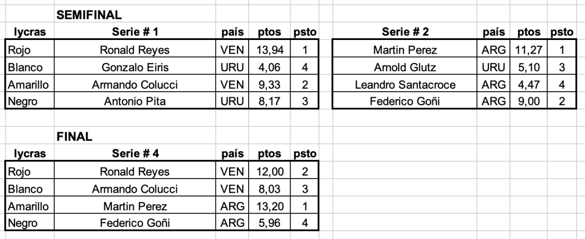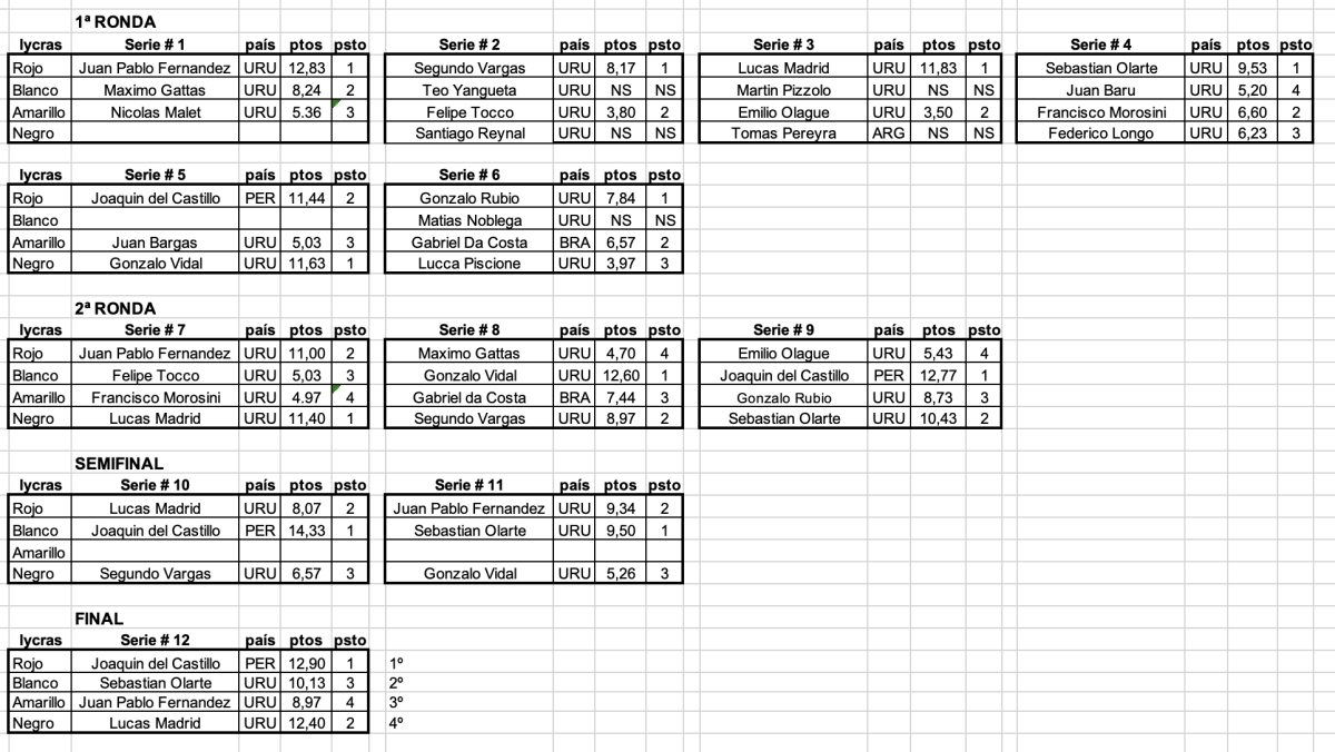 Debajo todos los resultados del evento: