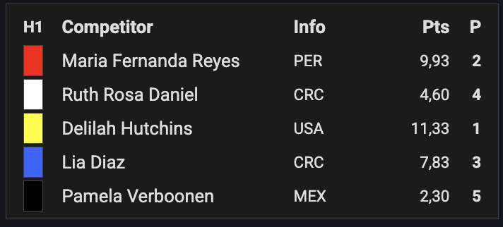In third place went to Lía Díaz, fourth to Ruth Rosa Daniel, and fifth to Pamela Verboonen.