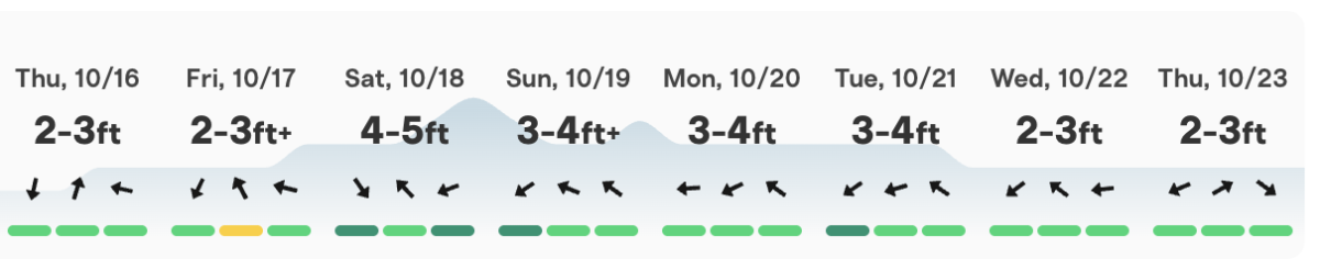 According to the specialized website Surfline, the sea will start out shallow (by El Rosario standards) with 1 to 3 feet of water on October 16 and good conditions, then gradually rise.
