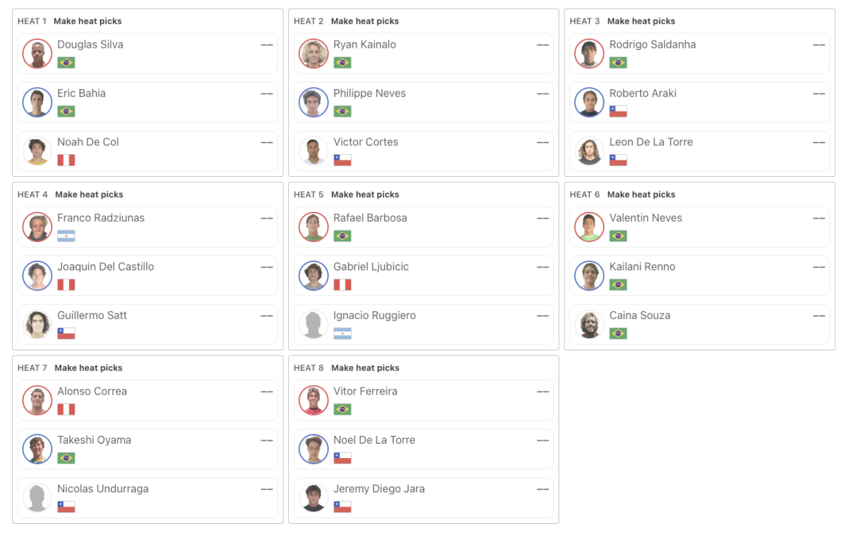 La series para el Arica Pro Tour, QS 2000 y etapa del Olas Pro Tour ya definió sus series.