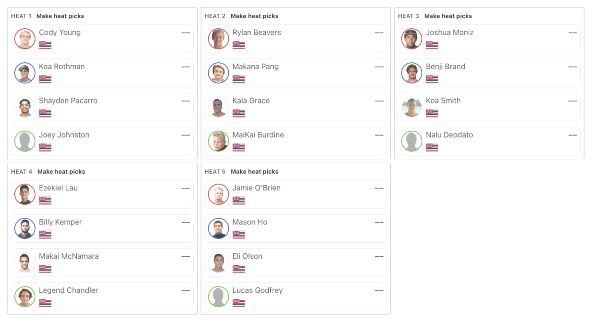 En ella están varios de los mejores surfers de Pipe que no compiten ni clasificaron a las challenger series, como Jamie O’Brien, Koa Rothman, Kala Grace, Koa Smith, Benji Brand, etcétera.