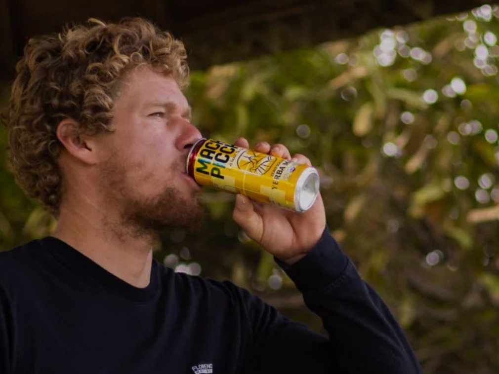 O del sabor a mate servido en una lata en forma de bebida energética de una empresa de la que él es socio...