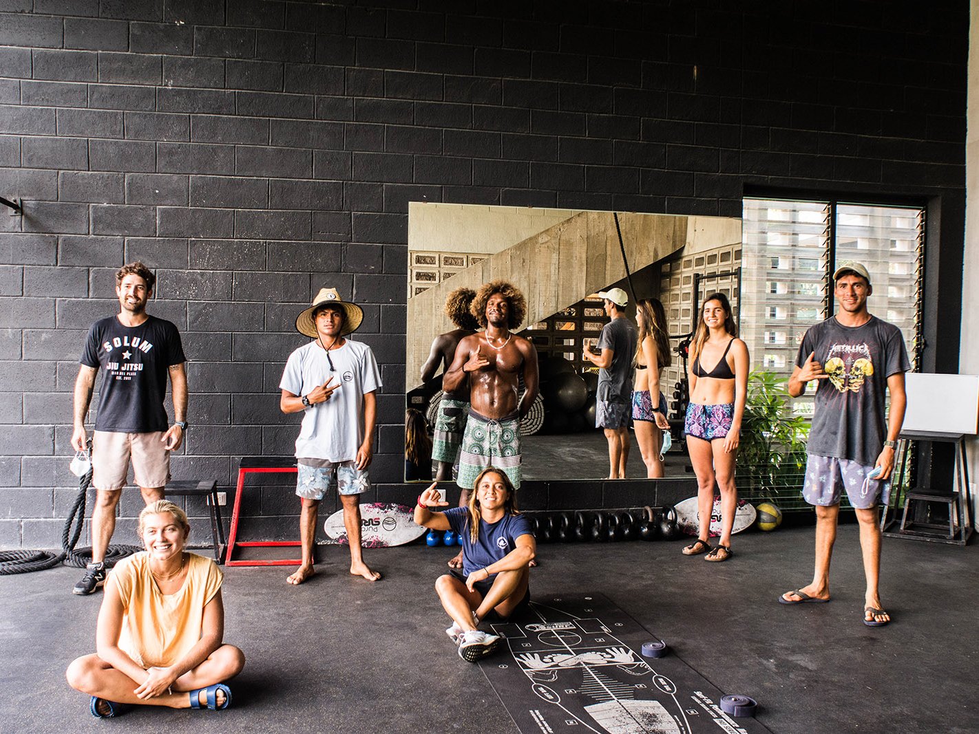 Con Medina, Coffin, Italo, Tatiana, Sally, Kelly, etcétera, ayer en la ola de las finales de la WSL