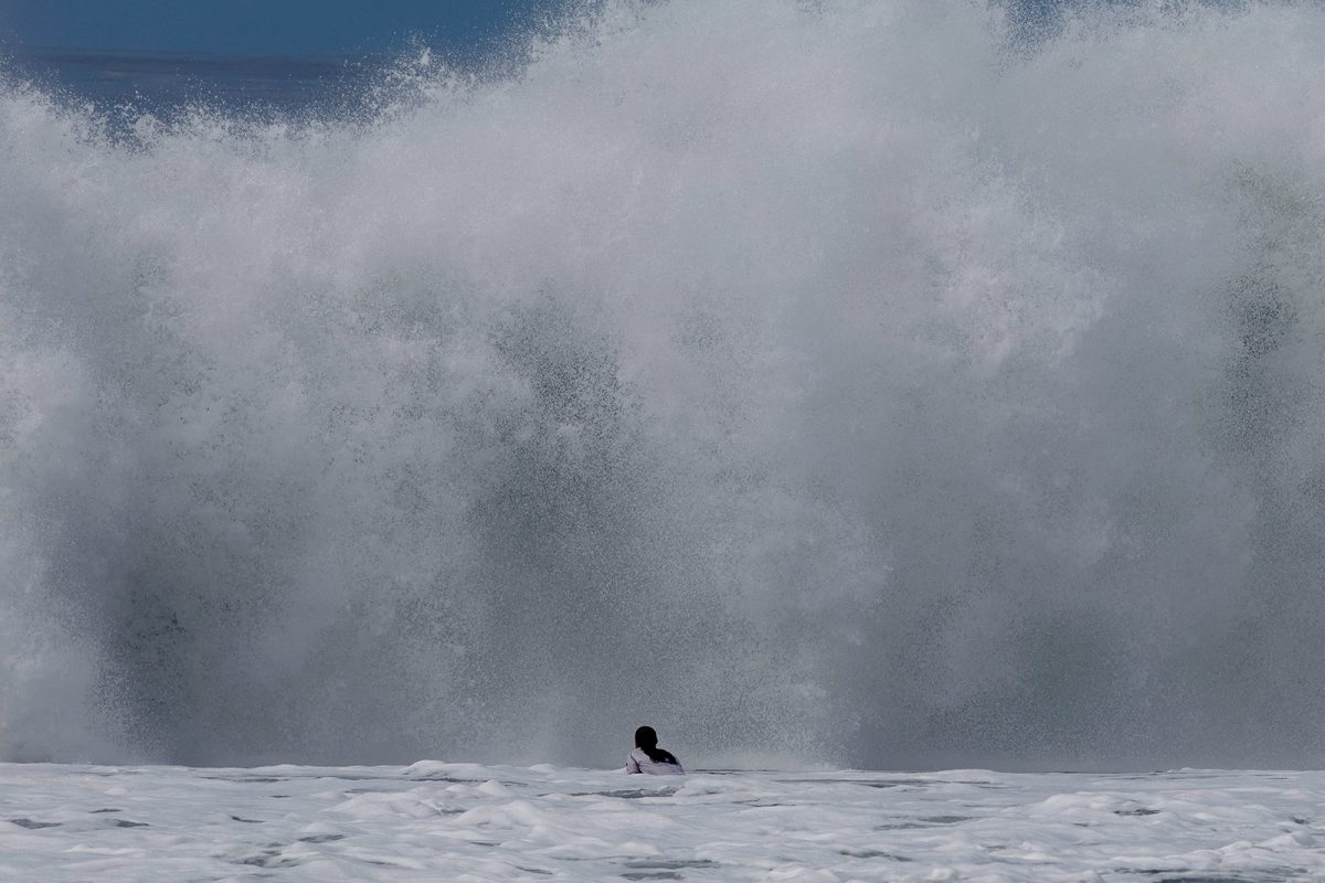 Darlyn Ramírez y una de las olas que la terminaron dejando en el hospital