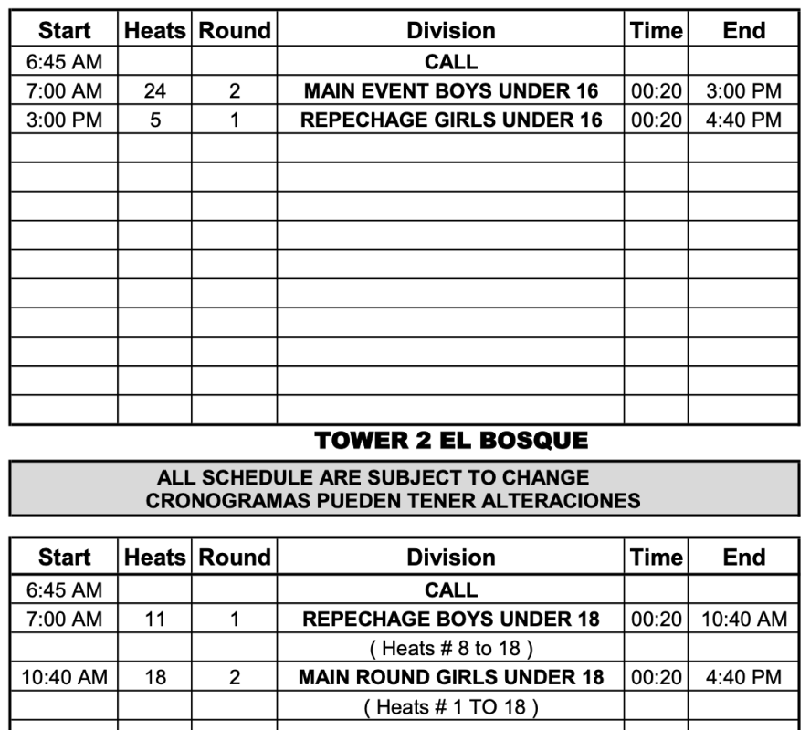 Cronograma del día 4 debajo: