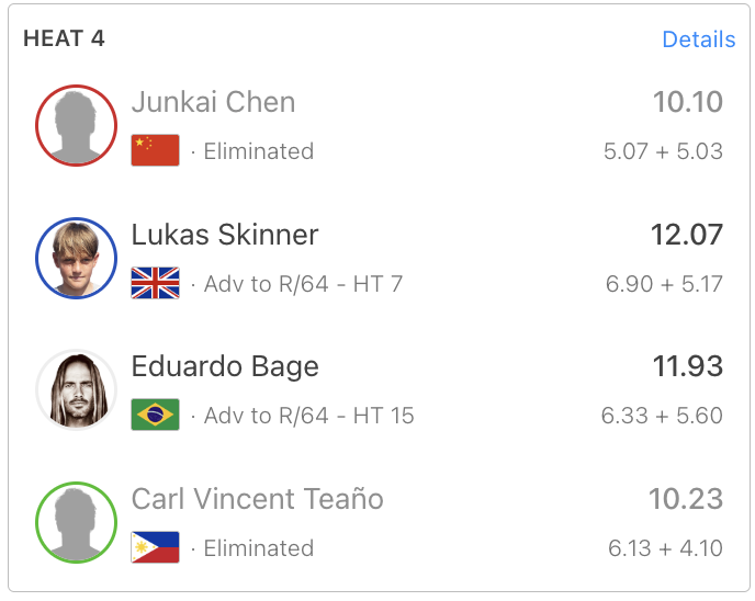 Skinner marcó 12,07 puntos para ganarle a Eduardo Bagé de Brasil, a Carl Vincent Teaño de Filipinas y a Junkai Chen de China.