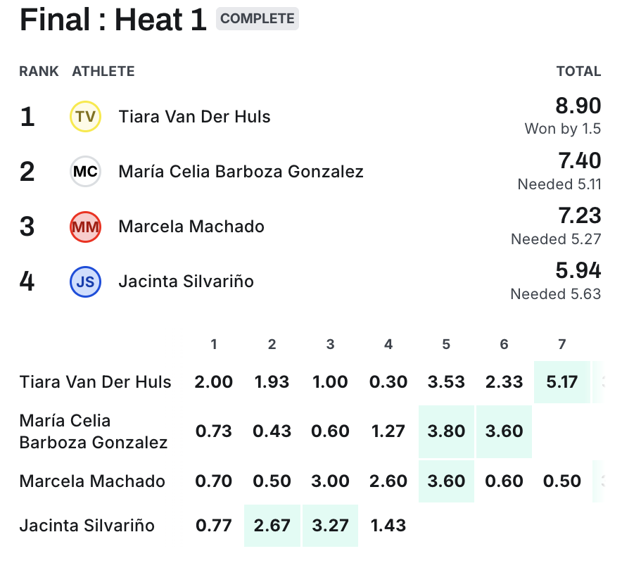 En tanto, las damas fueron dominadas por la joven neerlandesa Tiara Van der Huls de los Países Bajos, top del mundial ISA, que vino de vacaciones a Uruguay y aprovechó para competir en el evento.