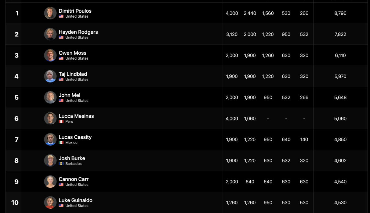 Debajo está el ranking luego de la etapa de Morro Bay:
