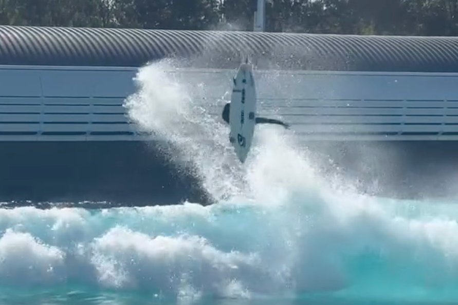 En la recién estrenada piscina de Perfect Swell en Hainan, China