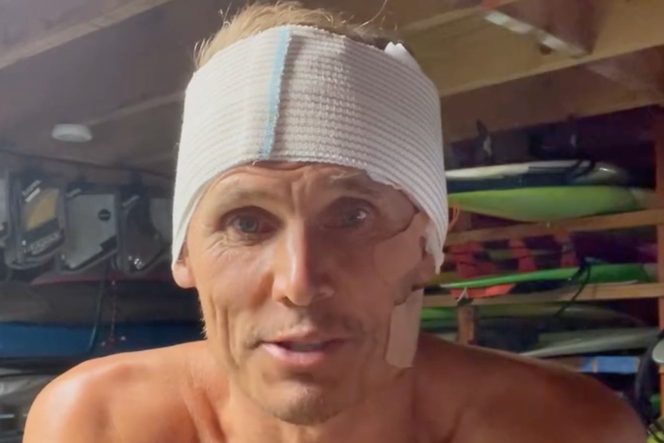 Contó en su Instagram que está fuera de peligro, se golpeó con su tabla y le dieron más de 35 puntos