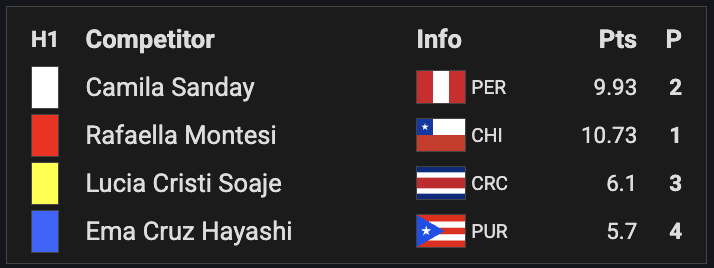 Thiago Passeri, Daniella Rosas, Jefson Silva, María Fernanda Reyes, Kailani Vincensini, Sophia Hernández, Romeo Marín Stone y Rafaella Montesi ganaron las ocho categorías que restaba por definir en la última etapa de la temporada regular del ALAS que finalizó hoy en El Paredón de Guatemala.
