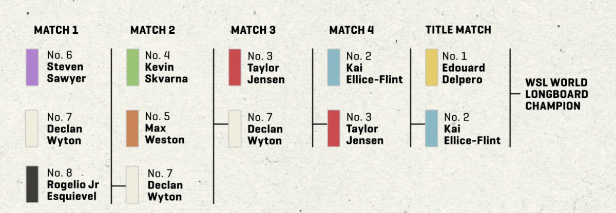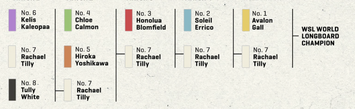 Esto significa que una de las finales tendrán a una surfista que irá al agua por lo menos cinco veces y la otra una y la otra un surfer que irá al agua por lo menos dos y el otro una.